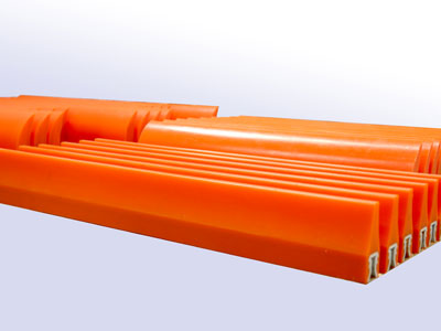 我公司生產聚氨酯澆注型彈性體制品,產品有超強的耐油、耐臭氧、耐老化、耐腐蝕、耐水解、耐低溫、耐高溫等優良的化學性能和耐撕裂、耐沖擊、高彈性、減振能力強、負載大等優良的物理性能。其優良的機械性能是橡膠、塑料以及其他材料都無法與之相媲美的。本公司采用先進的設備和工藝從事聚氨酯彈性體制品的研制和生產,工藝成熟。聚氨酯系列產品主要包括:聚氨酯擋煤板、聚氨酯刮刀等,為滿足不同客戶的需求,可根據圖紙、樣品定做各種規格的產品。